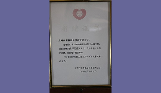2014年,上海紅箭自動化設備有限公司為上海市慈善基金會捐款 2014